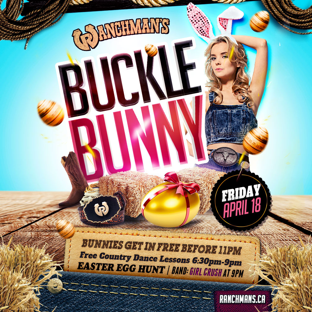 CALLING ALL BUCKLE BUNNIES Join us Easter Friday with Girl Crush April 18th! Dress in your best bunny costume for FREE COVER before 11pm and hunt for easter eggs!