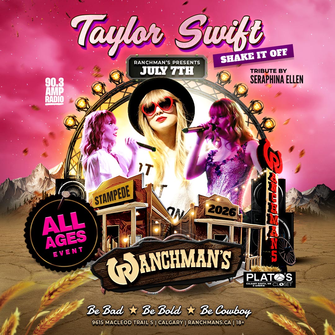 TAYLOR SWIFT TRIBUTE CONCERT SHAKE IT OFF - ALL AGES - TUESDAY JULY 7TH CLICK HERE FOR TICKETS. Get ready for a family-friendly afternoon of Tay Tay magic at the Ranchmans All Ages Taylor Swift Tribute! Starring Calgary's own incredible Seraphina Ellen, this high-energy show brings all the hits and sparkle you can handle. Dress […]