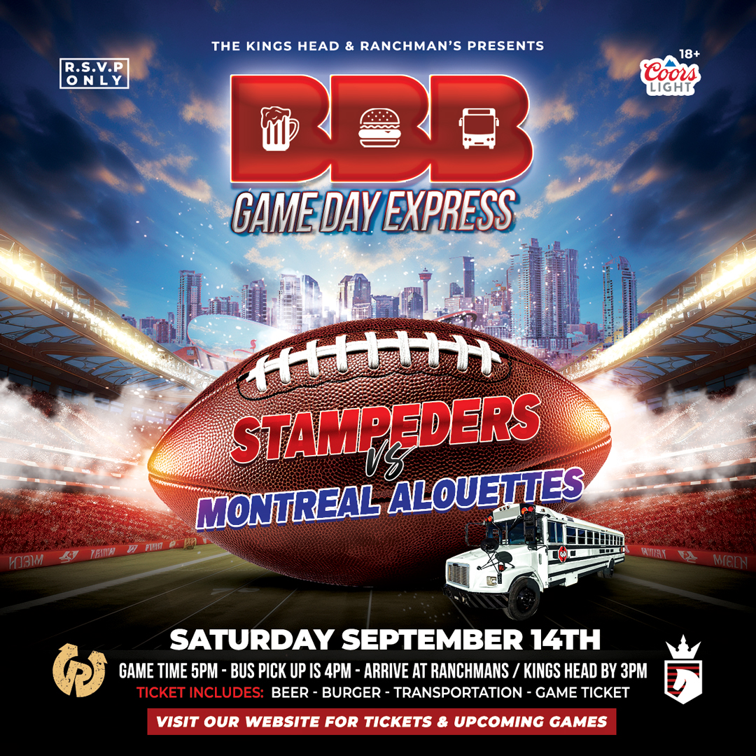 The King's Head & Ranchman's Presents BBB (Beer, Burger, Bus) Game Day Express CLICK HERE FOR TICKETS Your ticket includes - To and From Transportation from Kings Head to McMahon Stadium […]