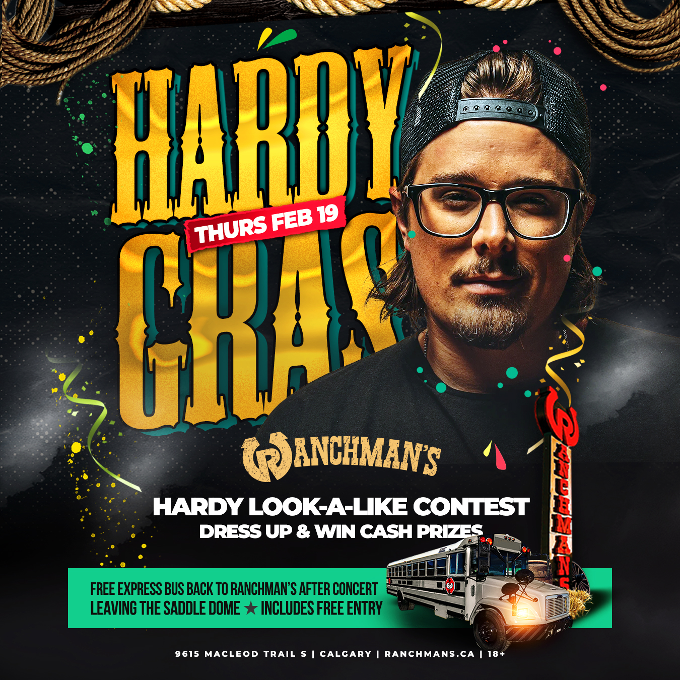 Think you look like Hardy? It could win you cold hard cash!! On Thursday, February 19th - Keep the party going after the Hardy concert at the Saddledome, with FREE entry into Ranchman’s! Immediately after the concert, find our Street Team outside Saddledome to get on the bus – seats are first come, first served! […]