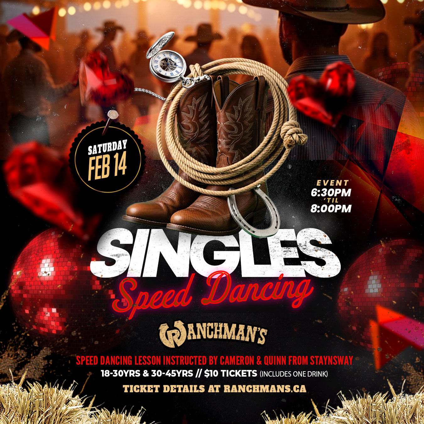 Click Here For Tickets RANCHMANS PRESENTS Singles Speed Dancing SATURDAY, FEBRUARY 14TH Saddle up for a night of two-steppin’, minglin’, and meetin’ new folks! Join us for Singles Speed Dancing, a fun and social evening designed for ages 18-30 & 30-45. Whether you’re looking to make a connection or just want to have a good time on […]